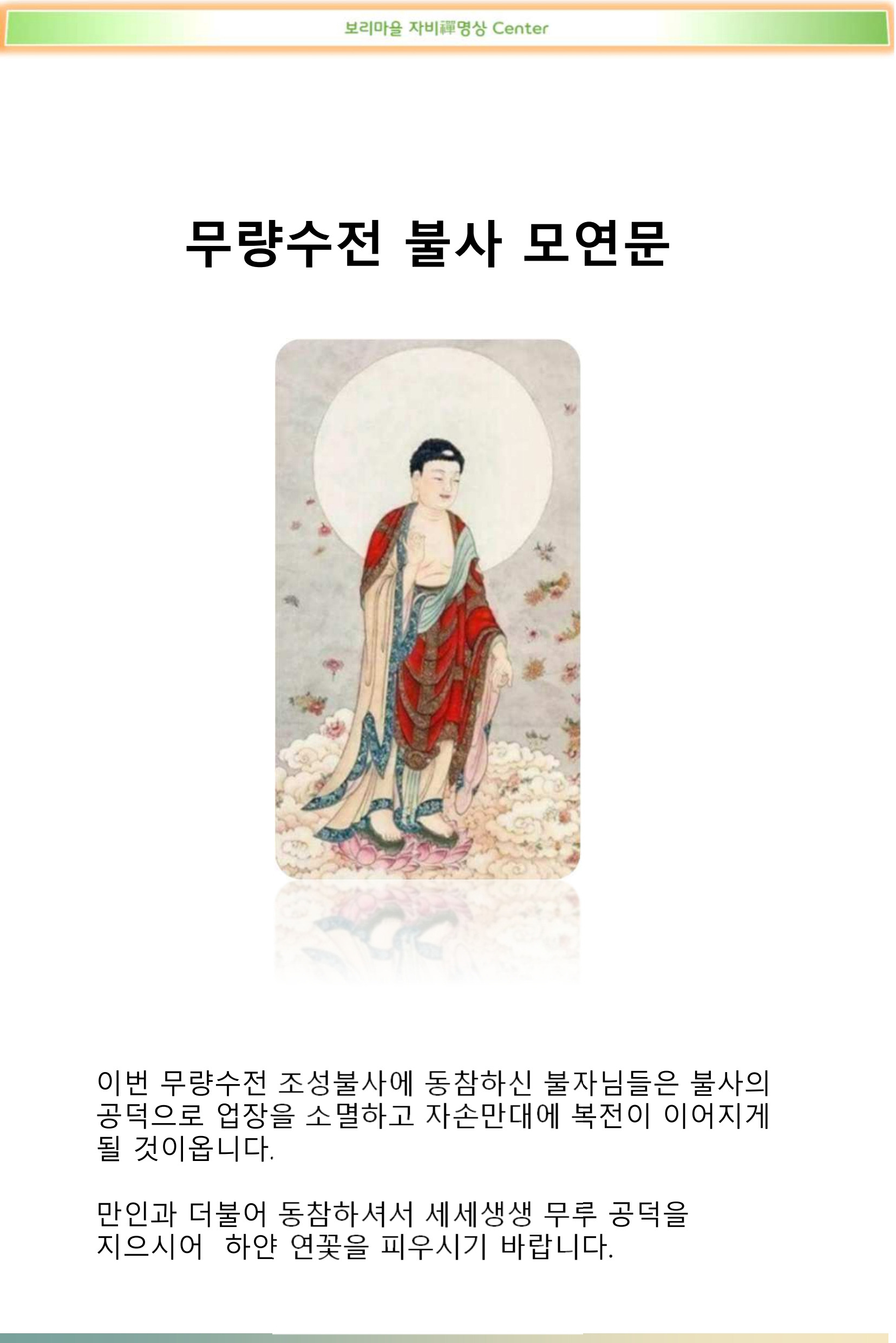 수희 동참하여 깨침의 인연을 맺으시길 축원합니다.