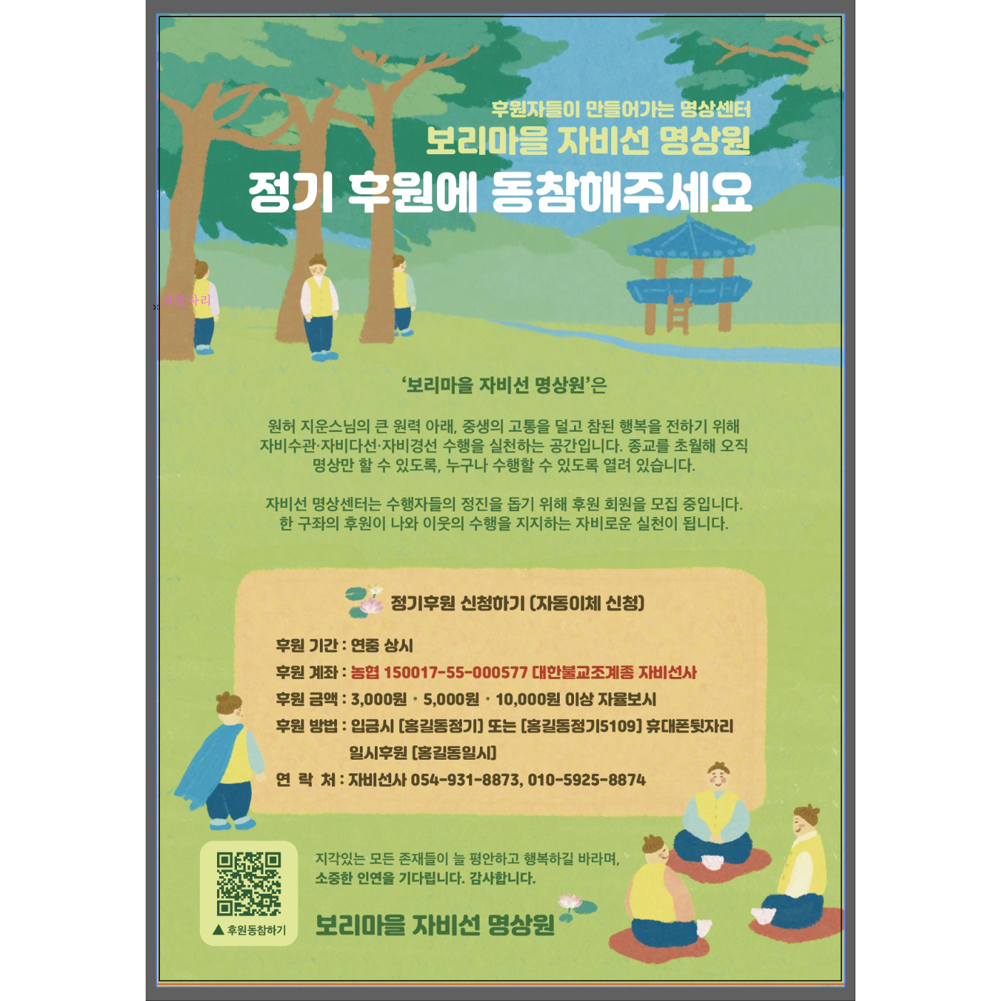 후원자들이 만들어가는 명상센터 ‘보리마을 자비선사’ 정기후원에 동참해 주세요.