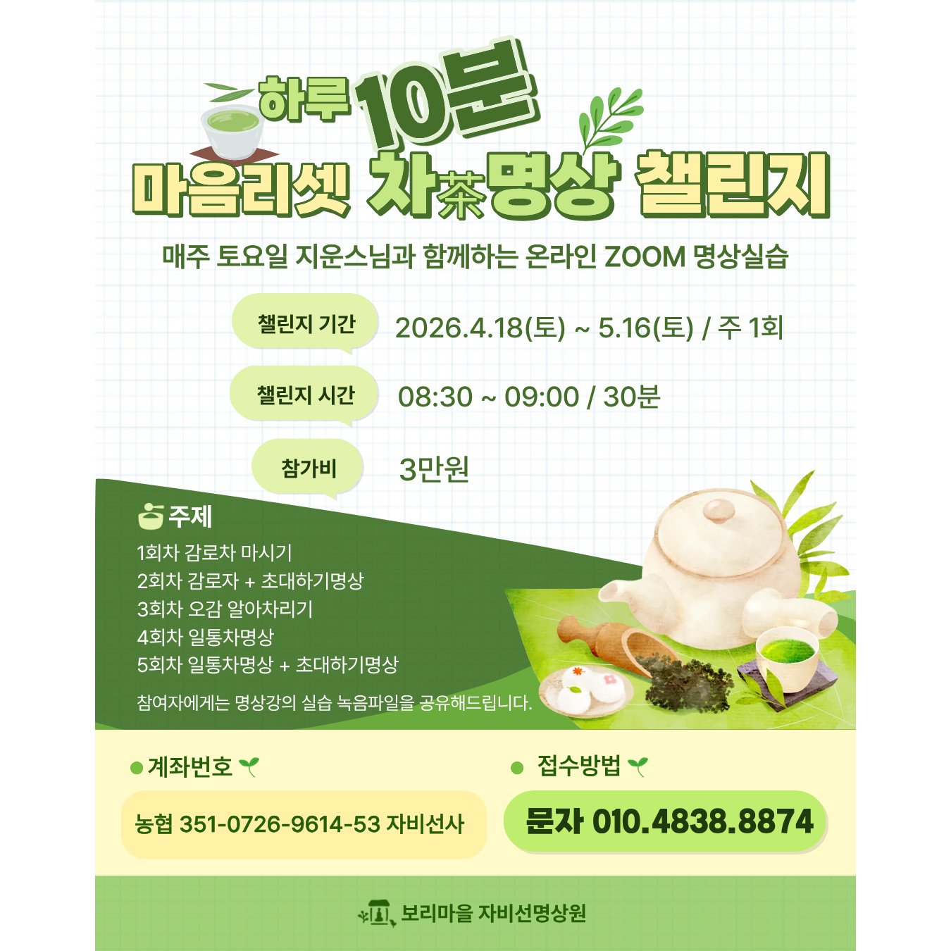 2026 하루 10분 마음리셋 차명상 챌린지 참가자 모집🍵