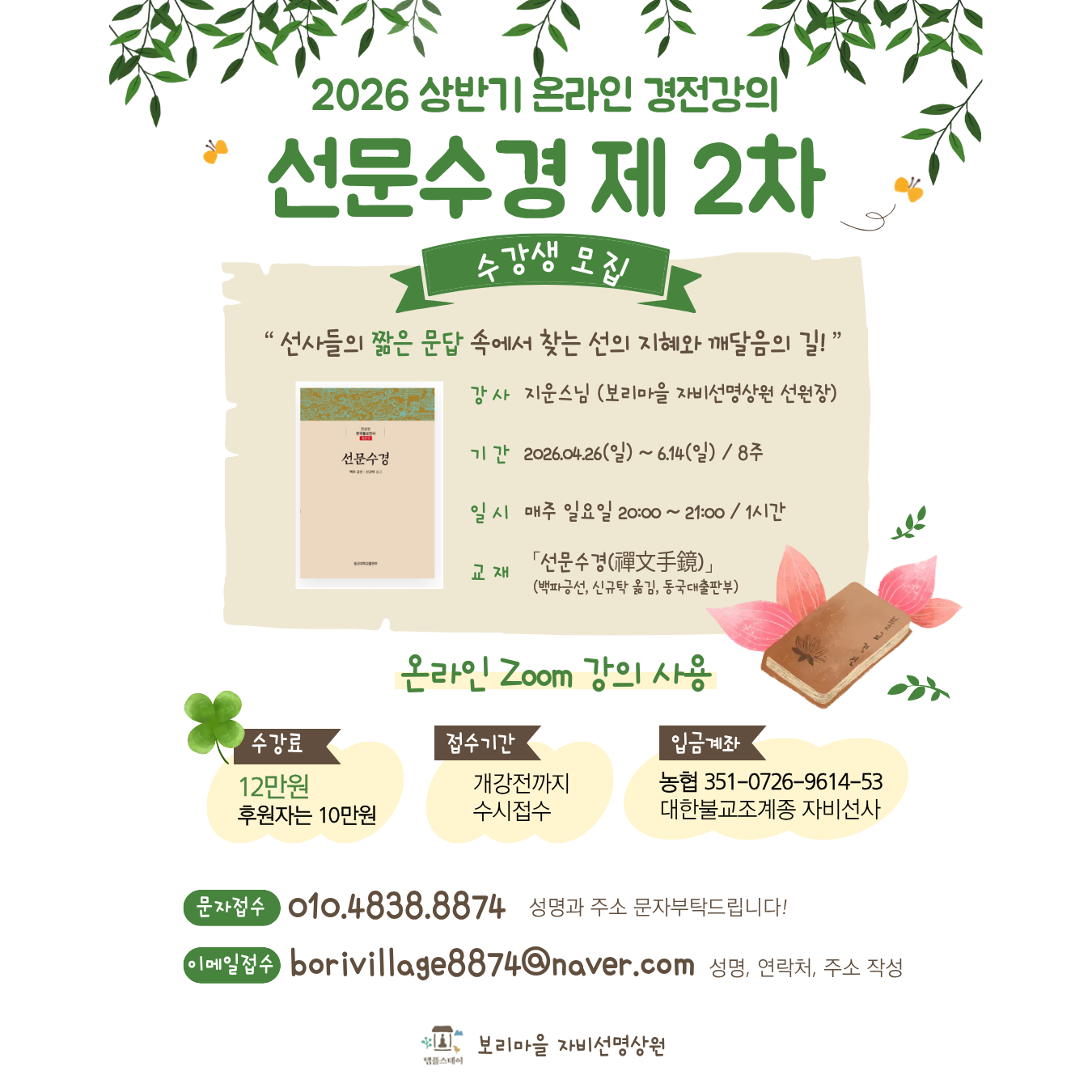 2026 상반기 온라인 경전강의 선문수경 제 2차 수강생 모집 안내
