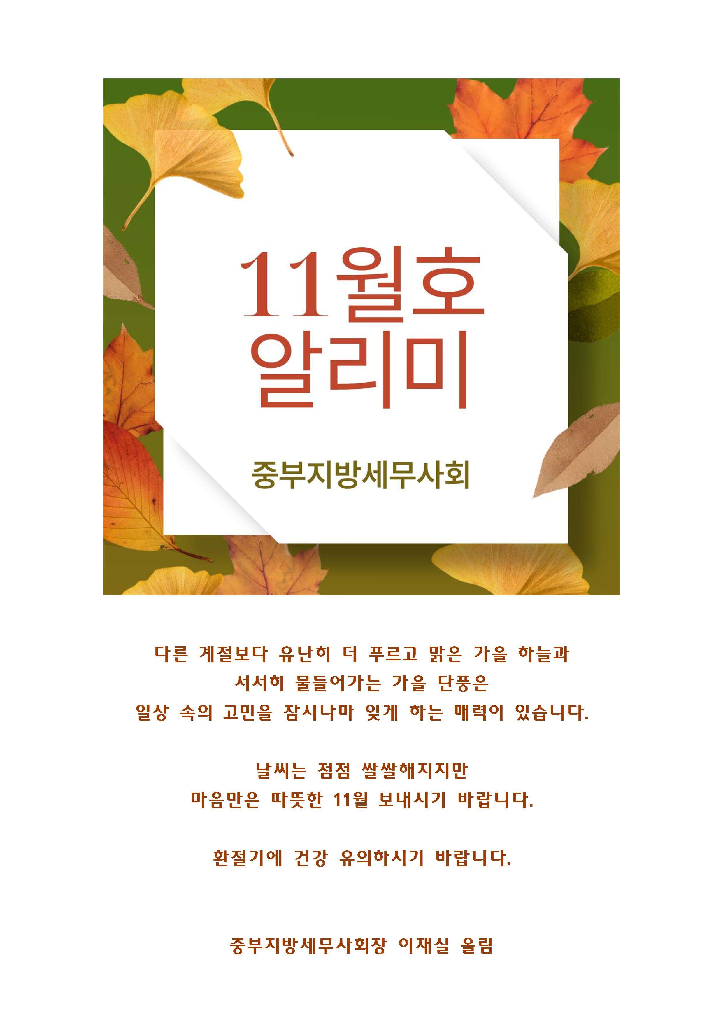 중부회 알리미(2025. 11월호) 작성자사무국2|작성시간25.11.03|조회수241 목록 댓글 0 글자크기 작게가 글자크기 크게가 다음검색 현재 게시글 추가 기능 열기 북마크 공유하기 신고 센터로 신고 댓글 댓글 0 댓글쓰기 답글쓰기 댓글 리스트