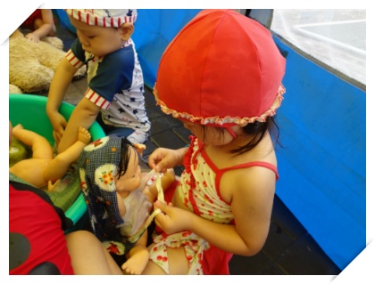 오늘 귀여운 수영복과 인형목욕놀이가 너무 잘 어울린 준서였답니다^^ -
