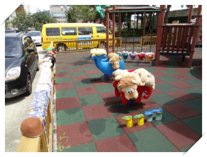 숲속 놀이터에 깨끗해진 예쁜반의 인형과 교구들이 햇살을 듬뿍 받고 있어요. 예쁜이들아~ 신나는 여름방학을 마치고 오면 또 즐겁게 놀아줄 거지? |