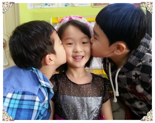 준하와 찬영이의 축하를 받고는 활짝 웃는 은강이~ 가연이와 지승이에게도 축하받구요~ 석주와 동언이와도 찰칵했네요~ 은강아 생일 축하해~ 행복한반 친구들과도 찰칵!! 우리 은강이 예쁜 포즈~ 은강아~ |