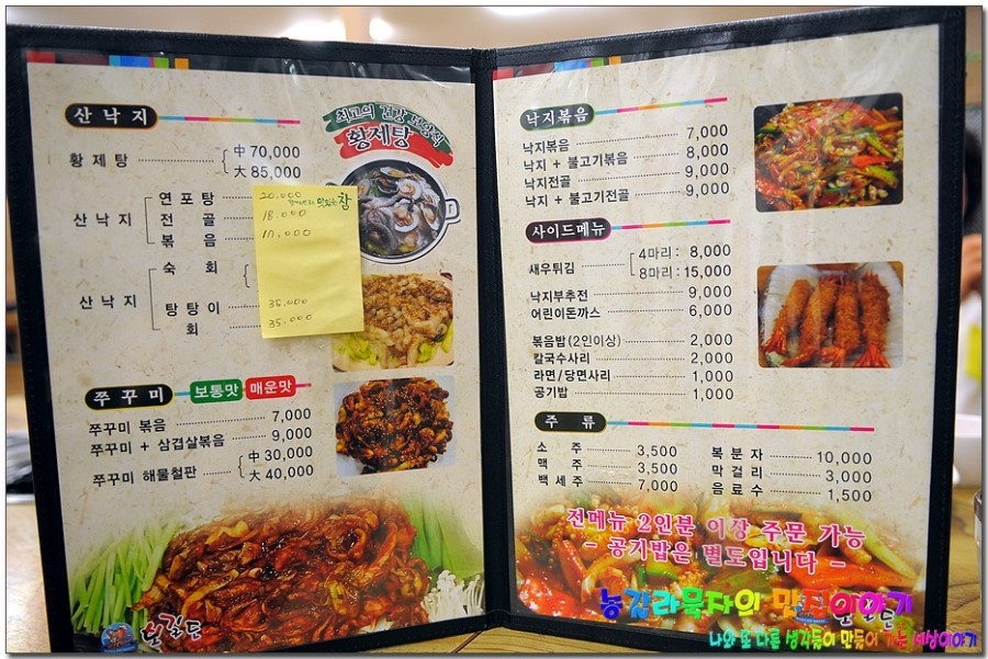 오늘은 불향 가득하다는 쭈꾸미+삼겹살볶음과 낙지볶음로 메뉴를...