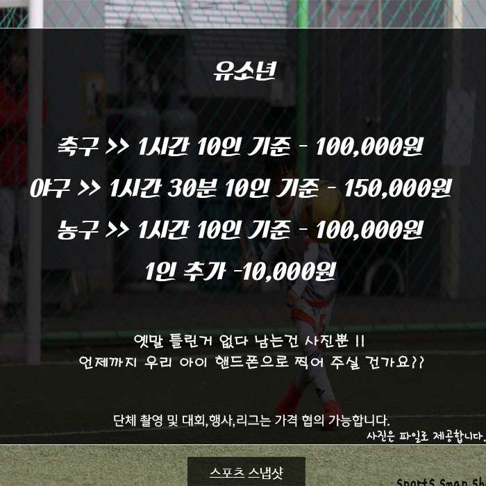 합리적인 가격으로 하나뿐인 스포츠 인생샷을 촬영해드립니다 !