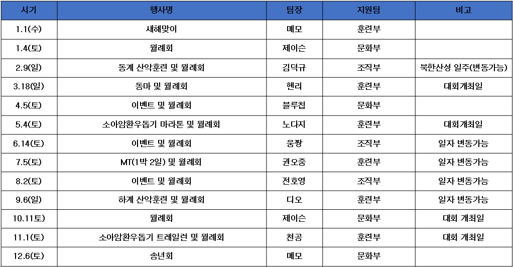 동하계 산악훈련, 하계MT 등 모든 행사를