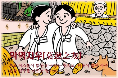 언제든지 내 편에 서서 나를 지지해주고, 진심으로 직언을 해줄 수 있는 친구가 막역지우다. 가릴 것 다 가리고 '좋은 게 좋다'는 식의 친구는 막역지우가 아니다. 지금 나에게 막역지우는 누구인가, 나는 누구에게 막역지우인가?