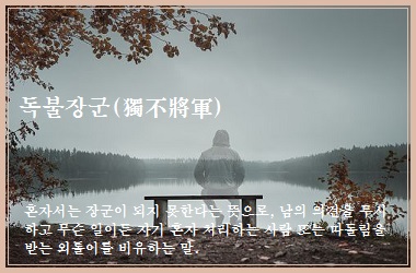 혼자서는 장군이 되지 못한다는 뜻으로, 남의 의견을 무시하고 무슨 일이든 자기 혼자 처리하는 사람 또는 따돌림을 받는 외톨이를 비유하는 말이다.