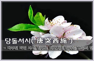 여기에 한 가지 더, 꺼리거나 어려워함이 없이 다부진(唐突) 서시라는 이 성어는 훌륭한 것과 함부로 비교하지 말라는 뜻으로 자신을 낮추는 겸손한 말이다. 당태종(唐太宗)때 방현령(房玄齡) 등이 편찬한 '진서(晉書)'의 주의(周顗)전에서 유래했다.