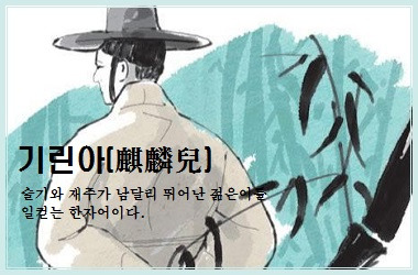 재주가 남달리 뛰어나고 총명해 촉망받는 젊은이를 가리킬 때 흔히 쓰는 말이다. 그러나 아프리카산 동물인 소목 기린과의 기린과는 전혀 관련이 없다.