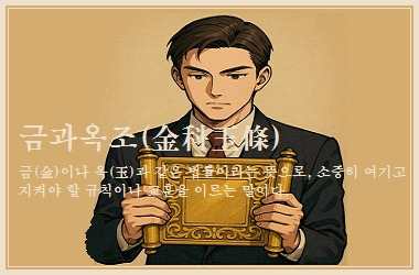 금과옥조(金科玉條)는 금이나 옥처럼 귀중한 법칙이나 규정을 의미하는 고사성어입니다. 이 고사성어는 중국의 고전 문헌에서 유래하였으며, 주로 법률과 규범을 강조하는 문맥에서 사용됩니다. '금(金)'은 단단하고 변하지 않는 성질을, '옥(玉)'은 귀하고 아름다운 가치를 상징하며, 이러한 성질을 가진 법령이나 규범을 뜻합니다. 예를 들어, 헌법과 같은 중요한 법률이나 윤리적 규범을 금과옥조(金科玉條)라고 부를 수 있습니다.
