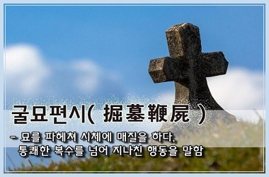 묘를 파헤쳐 시체에 매질을 한다는 뜻으로, 통쾌한 복수를 넘어 지나친 행동을 이르는 말이다.