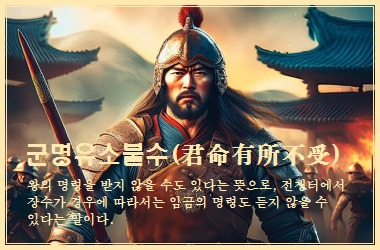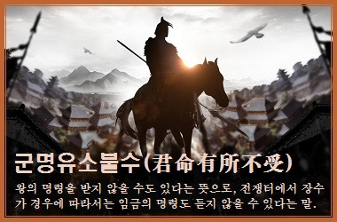 '군명유소불수(君命有所不受)'란 아무리 군주의 명이라고 하더라도 신하는 상황과 원칙에 따라 받들지 않는 것이 있다는 뜻이다.