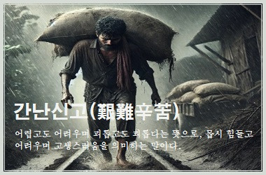 안녕하세요! 오늘은 다소 독특한 주제로 이야기를 나눠볼까 합니다. 바로 '간난신고(艱難辛苦)'인데요. 요즘 자기 개발, 학문, 그리고 목표를 이루기 위해 고군분투하는 사람들이 많죠. 그렇다 보니 흔히 고난과 역경에 관한 이야기가 자주 회자되곤 해요.