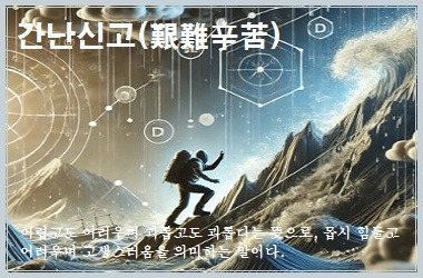 간난신고(艱難辛苦)는 삶의 고난을 통해 더 단단한 사람이 될 수 있음을 의미하는 성어이다. 고난은 피할 수 없지만, 이를 극복하는 과정에서 우리는 더 강해질 수 있다.