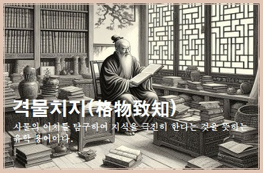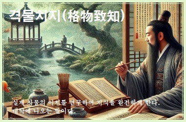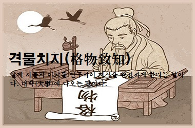 대학의 수신제가 다음으로 알려진 말이 실제적 사물을 통하여(格物) 그 이치를 연구하고 온전한 지식에 이른다(致知)는 이 성어다. 격치(格致)라 줄여 써도 같다. 유학의 전문 연구자들이 오랫동안 깊이 다뤄 온 깊은 뜻을 쉽게 알 수는 없으나 와 닿는 설명들을 종합하면 치국평천하(治國平天下)의 기본이 되는 것이라 했다.