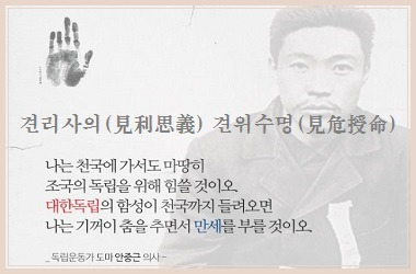 일찍이 안중근 장군은 이익을 보거든 그것이 옳은지 그른지를 먼저 생각하고, 나라의 위태로움을 보거든 목숨을 바친다는 신념을 가진 분이었다. 견리사의(見利思義)와 견위수명(見危授命)은 논어 헌문편에 자로(子路)와 공자의 대화에서 유래한 고사성어지만, 우리에겐 안중근 장군의 유묵으로 인해 더 많이 알려져 있다.