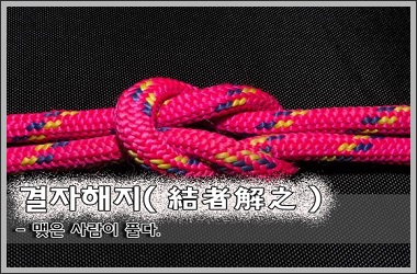 본의 아니게 실수를 했다고 해도 일을 저지른 당사자가 깨끗이 책임지는 자세가 바로 매듭을 묶은 사람(結者)이 풀어야 한다(解之)는 이 성어다.