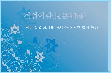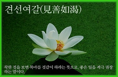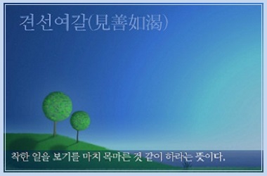 착한 일을 보기를 마치 목마른 것 같이 하라는 뜻으로, 좋은 일을 적극 권장하는 말이다.