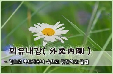 역경(易經) 부괘(否卦)에 ‘안은 음이고 밖은 양이며, 안은 유하고 밖은 강하다’라는 말이 나오는데, 외유내강(外柔內剛)은 그 반대의 뜻으로 밖은 유(柔)하고 안으로 강(剛)하다는 뜻이다.