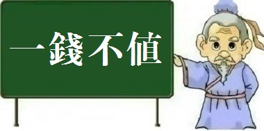 이 성어도 사람을 대놓고 한 푼 가치가 없다고 말했다가 결국 목숨까지 내놓게 된다. 値는 直으로도 쓰고, 불치일문(不値一文), 불치일전(不値一錢)도 같은 뜻이다.