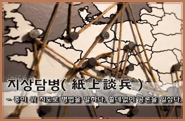 종이 위에서 병법을 말한다는 뜻으로, 실제적인 쓰임에서는 필요 없음을 비유한 말이다.