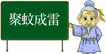 잘 알려진 우공이산(愚公移山)이나 도끼를 갈아 바늘을 만드는 마부위침회(磨斧爲針)도 있다. 반면 무섭거나 부정적인 것도 있다. 깃털이 쌓여 배를 가라앉히는 적우침주(積羽沈舟)와 같이 모기소리가 많이 모이면(聚蚊) 우레가 된다(成雷)는 이 성어는 소인배가 사실을 왜곡하여 열심히 남을 욕함을 이르는 말이다.