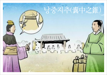 낭중지추(囊中之錐)는 주머니 속의 송곳이라는 뜻이다. 주머니 속에 넣어둔 송곳은 그 존재를 아무리 숨기려고 해도 끝이 뾰족한 탓에 밖으로 비어져 나오게 마련이다. 마찬가지로 재주가 뛰어난 사람은 숨어 있어도 저절로 남의 눈에 드러난다는 말인데, 아이러니하게도 이 이야기가 실려 있는 사마천의 사기(史記) 평원군열전(平原君列傳)을 보면 그 반대의 상황에서 이 말이 생겨났다.