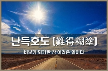 호도(糊塗)는 풀칠이니, 한 꺼풀 뒤집어써서 제대로 보지 못한다는 말이다. 난득(難得)은 얻기 어렵다는 뜻이다. 난득호도는 바보처럼 굴기가 어렵다는 의미다.