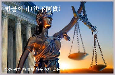 법은 귀한 자에게 아부하지 않는다는 뜻으로, 법을 집행하는 것이 공정하고 법률은 모든 사람에게 평등해야 한다는 말이다.