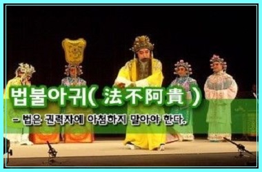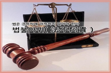 법은 귀한 자에게 아부하지 않는다는 뜻이다. 법이 집행될 때는 공정해야 하고, 신분에 따라 달리 적용되지 않고 모든 사람에게 평등하게 적용돼야 한다는 말이다. 오늘날 법을 다루는 공직자들이 지녀야 할 자세를 가르친다.