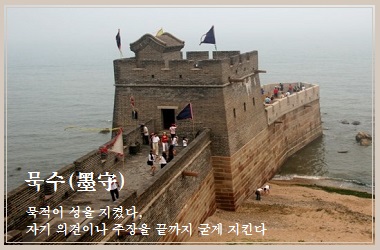 그렇다고 해서 묵수(墨守)가 ‘먹을 가지고 지킨다’는 뜻은 아니다. 여기서 묵은 사람의 성, 곧 묵자를 가리키는 말로서 묵자가 지켰다는 뜻이다.