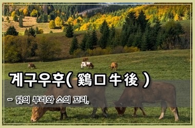 계구우후(鷄口牛後)는 사기(史記)의 소진전(蘇秦傳)에 나오는 영위계구 물위우후[寧爲鷄口 勿爲牛後], 즉 ‘계구(鷄口)가 될지언정 우후(牛後)는 되지 말라.’ 에서 유래된 것이다.