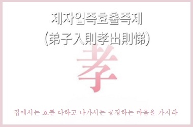 논어(論語) 학이편(學而篇)에 나오는 공자(孔子)의 너무나 유명한 말씀으로 인간 도리의 출발점인 효와 타인에 대한 존중 정신을 가르치고 있다.