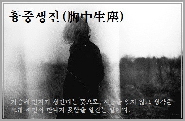 가슴에 먼지가 생긴다는 뜻으로, 사람을 잊지 않고 생각은 오래 하면서 만나지 못함을 일컫는 말이다.