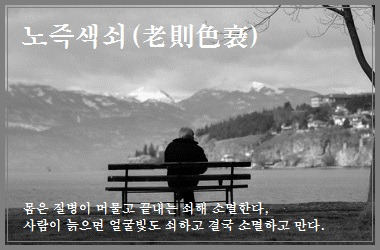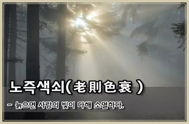 사람이 늙으면(老則) 얼굴빛도 쇠하고 결국 소멸하고 만다(色衰)는 이 성어는 불교의 법구경(法句經)에서 처음 사용됐다고 한다.