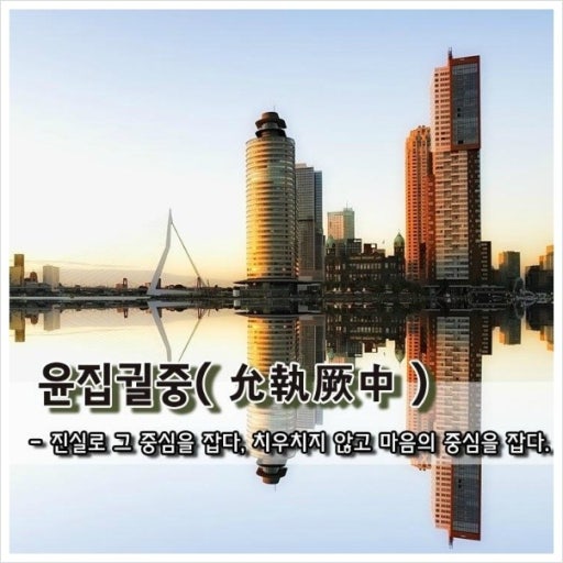 진실로 그 가운데를 잡는다는 이 성어는 중국 고대 순(舜)임금이 우왕(禹王)에게 선양하면서 마음을 조심하고 살피라고 당부한 말에 등장한다.