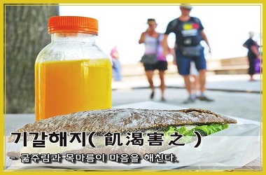 굶주려 배가 고프면 죽을까 걱정되고 목말라 갈증이 나면 속이 타서 살기 힘들다. 사람이면 누구나 추구하는 생존의 절실한 문제를 기갈(饑渴)로 표현하였다.