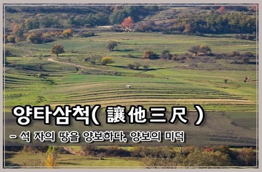 다른 사람에게 삼 척의 땅을 양보한다는 뜻으로, 양보의 미덕(美德)을 말한다.