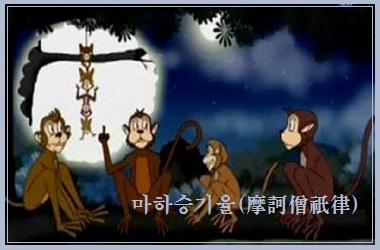 이때 원숭이 무리의 우두머리가 우물 속의 달을 보고 무리들에게 말했다.