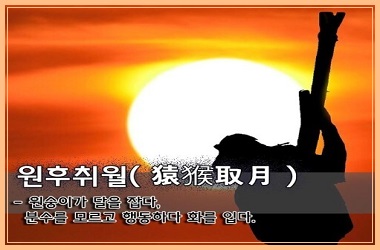 원숭이(猿猴)가 물에 뜬 달을 잡으려 한다(取月)는 이 성어도 재주만 믿고 분수에 맞지 않게 행동하다 화를 당하는 것을 뜻한다.