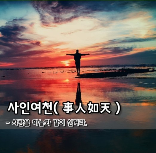 우리의 민족종교 천도교(天道敎)의 기본 사상인 이 말은 조선 말엽 수운(水雲) 최제우(崔濟愚) 선생이 동학(東學)을 창시할 때부터 사람을 하늘처럼 모신다는 시천주(侍天主) 가르침에서 나왔다.