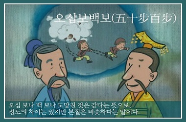 혜왕이 답했다. "오십 보나 백 보나 도망친 것은 마찬가지가 아니요?"