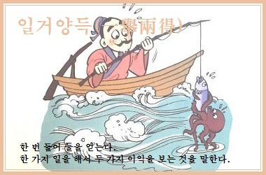 한 번 들어 둘을 얻는다. 한 가지 일을 해서 두 가지 이익을 보는 것을 말한다.