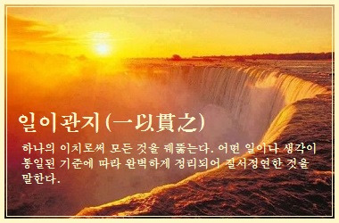 이 것 저 것 많이 아는 것만으로는 충분한 지식이 될 수 없다. 자신이 아는 것을 일이관지(一以貫之)의 철학으로 정리해 보자. 감동은 지식이 많아서 오는 것이 아니다. 일이관지(一以貫之)의 삶을 산다면 사람들에게 감동을 주는 데 많은 시간이 필요하지 않을 것이다. 공자가 설파한 일이관지(一以貫之)의 철학을 우리의 삶 속에서 점검하고 실천해 보자.