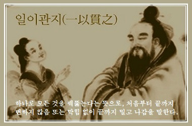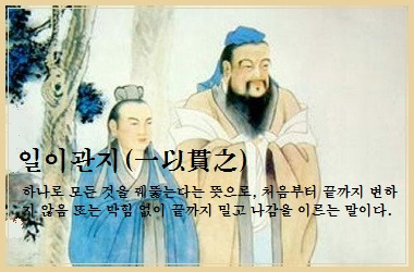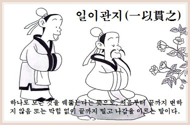 공자가 말을 이었다. "아니다. 나는 하나로써 꿰었다(一以貫之)."