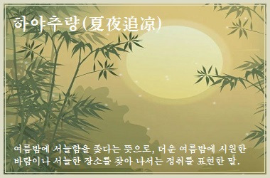 여름밤에 서늘함을 좇다는 뜻으로, 더운 여름밤에 시원한 바람이나 서늘한 장소를 찾아 나서는 정취를 표현한 말이다.