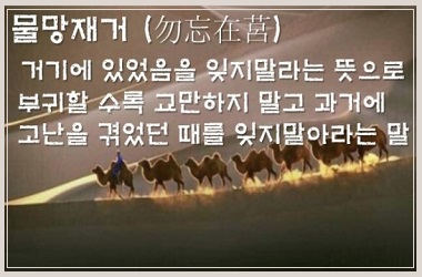 선거철이 가까워지면 목청을 돋우어 온갖 화려한 경력으로 선출직에 나서려고 한다. 그러나 어려운 난관을 극복하고 고위공직이나 권력기관에 자리를 차지하고 나면 부정부패에 연루되어 사회적 지탄을 받는 사람들이 허다하다. 물망재거(勿忘在居)의 교훈을 잊어버렸기 때문이다.