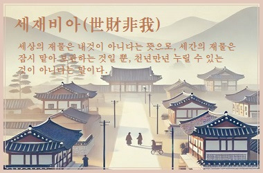 세상의 재물은 내것이 아니다는 뜻으로, 세간의 재물은 잠시 맡아 보관하는 것일 뿐, 천년만년 누릴 수 있는 것이 아니다는 말이다.
